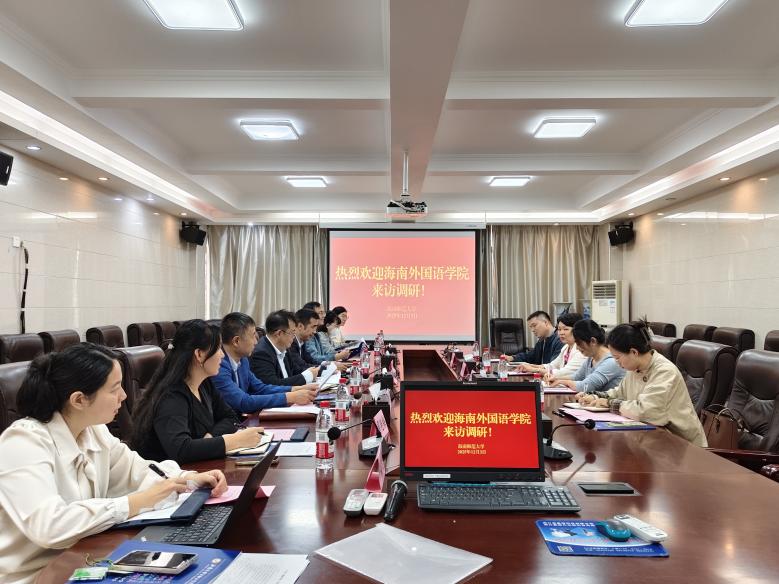 12月3日上午,海南省外国语职业学院国际合作与交流处李朝霞处长一行来访我校调研交流,我处鲁安处长、李阳副处长会见来宾并举行座谈。