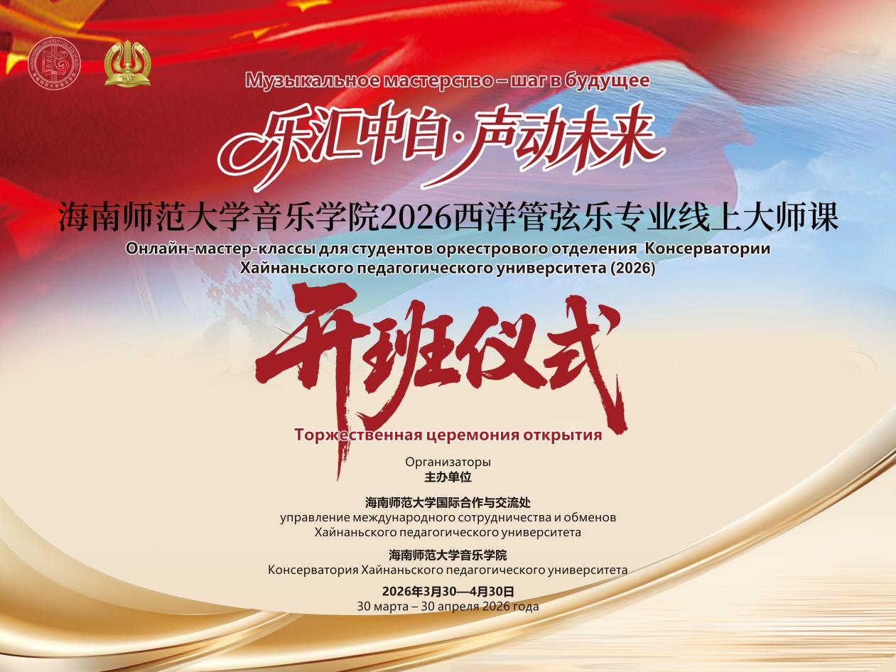 3月30日下午,海南师范大学与白俄罗斯国立音乐学院云端大师班开班仪式在线上隆重举行。海南师范大学党委副书记符刘才,白俄罗斯国立音乐学院校长叶列娜•维克托罗夫娜、副校长马克西姆•福米奇,两院艺术大师及相关职能部门、音乐学院负责人、师生代表出席。此次云端大师班是两校落实前期访问交流共识、深化艺术教育务实合作的重要举措,标志着两校国际艺术教育交流迈入新阶段,也是学校依托海南自贸港优势、推进教育对外开放的具体实践。